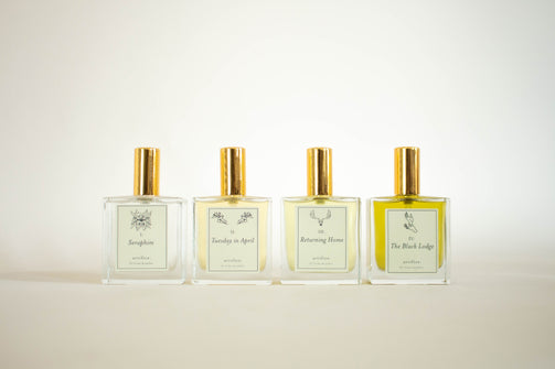 Collection I includes scents Seraphim, Tuesday in April, Returning Home, and The Black Lodge. These four scents explore different facets of perfumery, featuring sweet, floral, herbal, and spice. Collection I establishes a solid repertoire of fragrances to choose from, allowing you to explore different moods, and layer scents to create something unique to you.